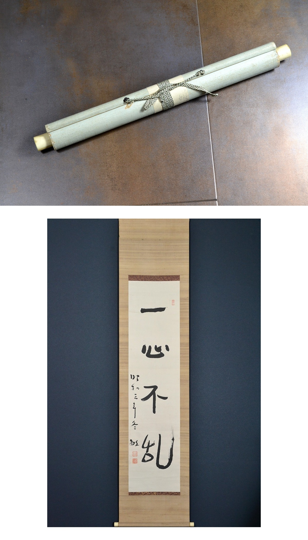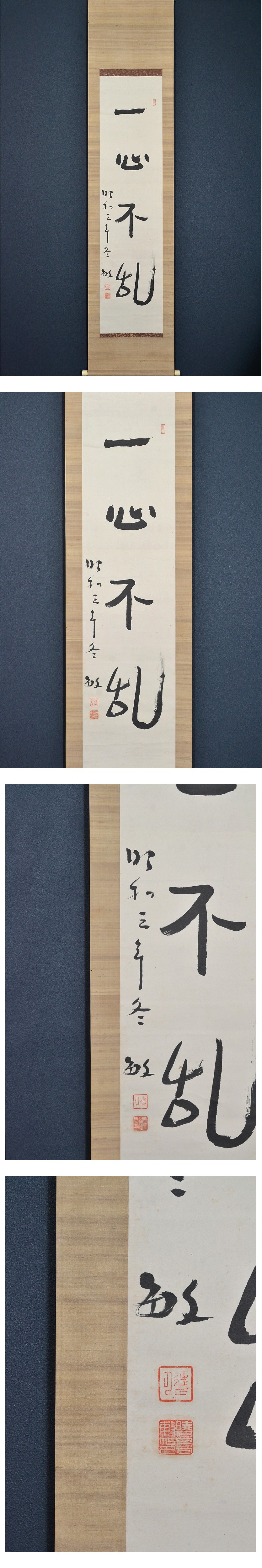 - 浄土真宗大谷派 暁烏敏「一心不乱(一行書)」真作 高浜虚子師事 加賀三羽烏 東本願寺 仏教学者 掛け軸 掛軸 書画
