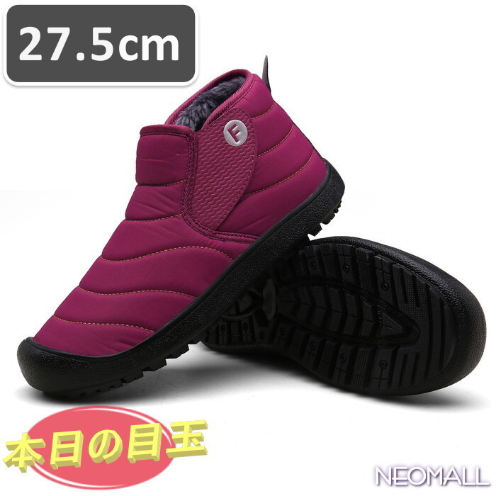 - ユニセックス スノーシューズ 【869】 27.5cm ローズ ムートンブーツ スニーカー ウィンターブーツ 裏起毛 防水 防寒 防滑 冬用靴 綿靴