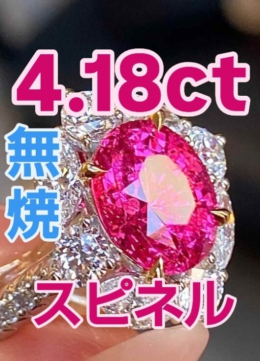 - 「熱き輝き—— 4.18カラットが燃やす、スピネルの新時代。」 ミャンマー産 無処理無焼非加熱ノーヒート ホットピンク スピネル 18Kリング