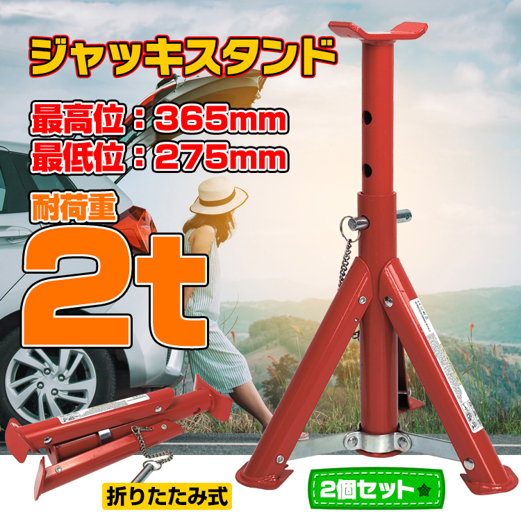 - 送料無料 ジャッキスタンド 2t 折りたたみ 2基セット ウマ 馬ジャッキ リジッドラック ジャッキアップ 2トン タイヤ交換 軽量 車用品 ee123