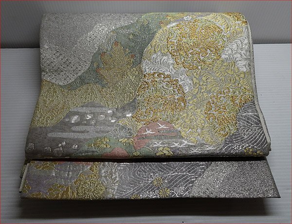 > Bana8◆程度良◆和装・小物 六通 袋帯 有職 道長取 波紋 銀糸 金糸