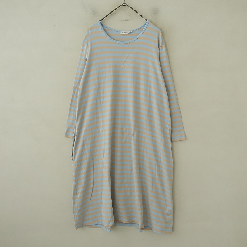 > マリメッコ marimekko *コットン天竺ボーダーAラインワンピース*XLカットソージャージー丸首シームポケット(2-2509-257)【81J52】