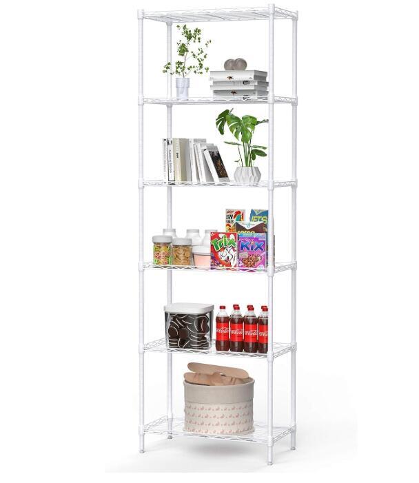 - メタルラック 6段 キャスター付き ホワイト スチールシェルフ ワイヤーラック 置物架 材質炭素鋼