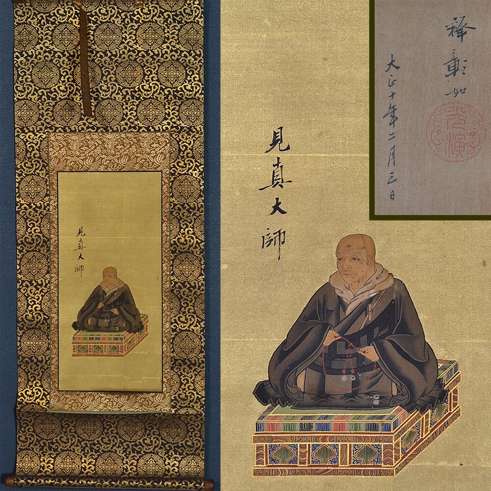 - 真宗大谷派「太祖聖人尊像(親鸞御影)」東本願寺第23代法主大谷光演極付 真作 浄土真宗宗祖 掛軸 掛け軸