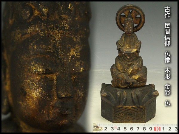- 【銀閣】古作 民間信仰 仏像 木彫 金彩 仏 高18.5cm 旧家蔵出 送料無料(YC39)