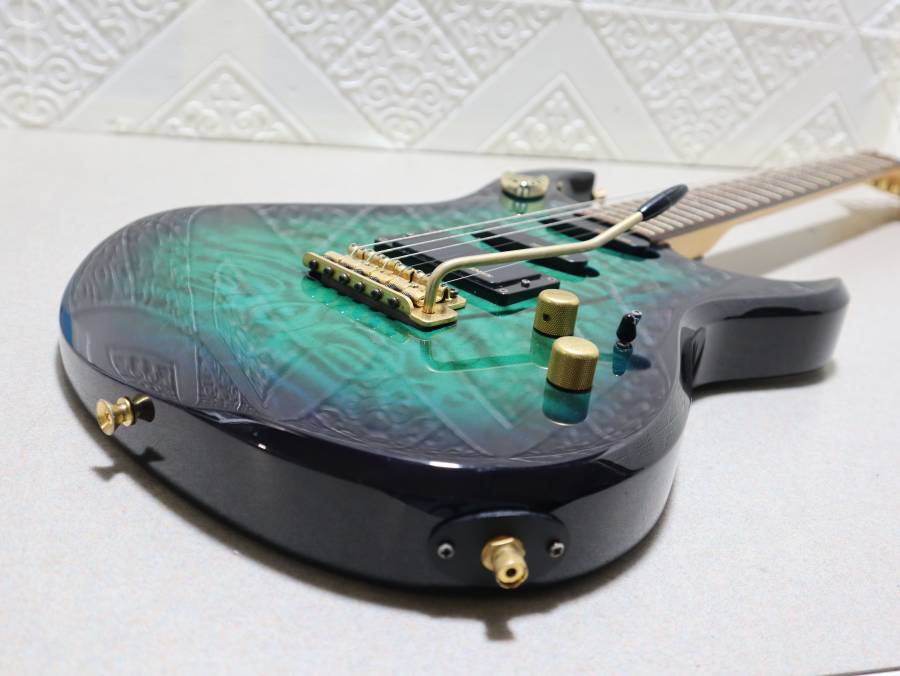 - A0515 P FERNANDES FGZ-420 エレキギター HSS キルトトップ グリーンバースト ゴールドパーツ ソフトケース付 中古品