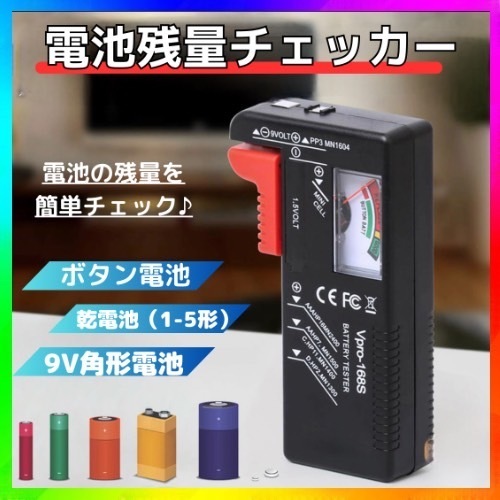 - 電池 チェッカー テスター 測定器 バッテリー 乾電池 ボタン 残量 携帯 黒
