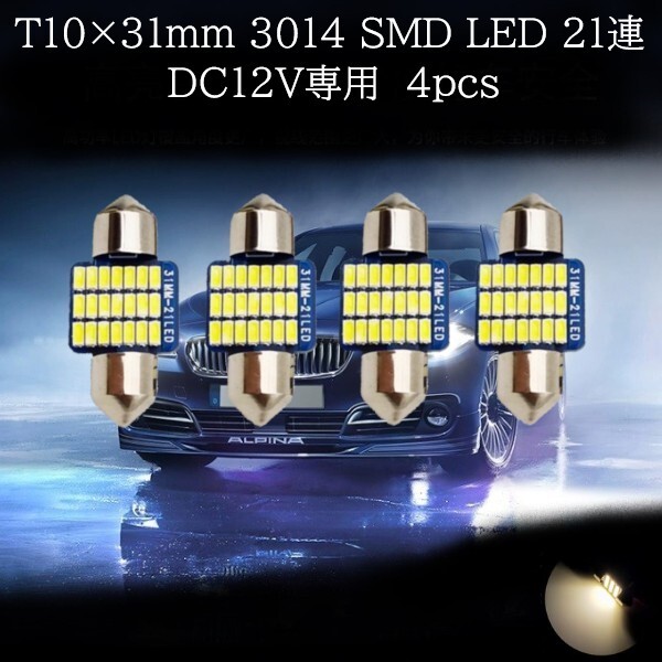 - 【匿名配送】 T10×31mm 3014 SMD LED 21連 暖白(電球色) 4個セット