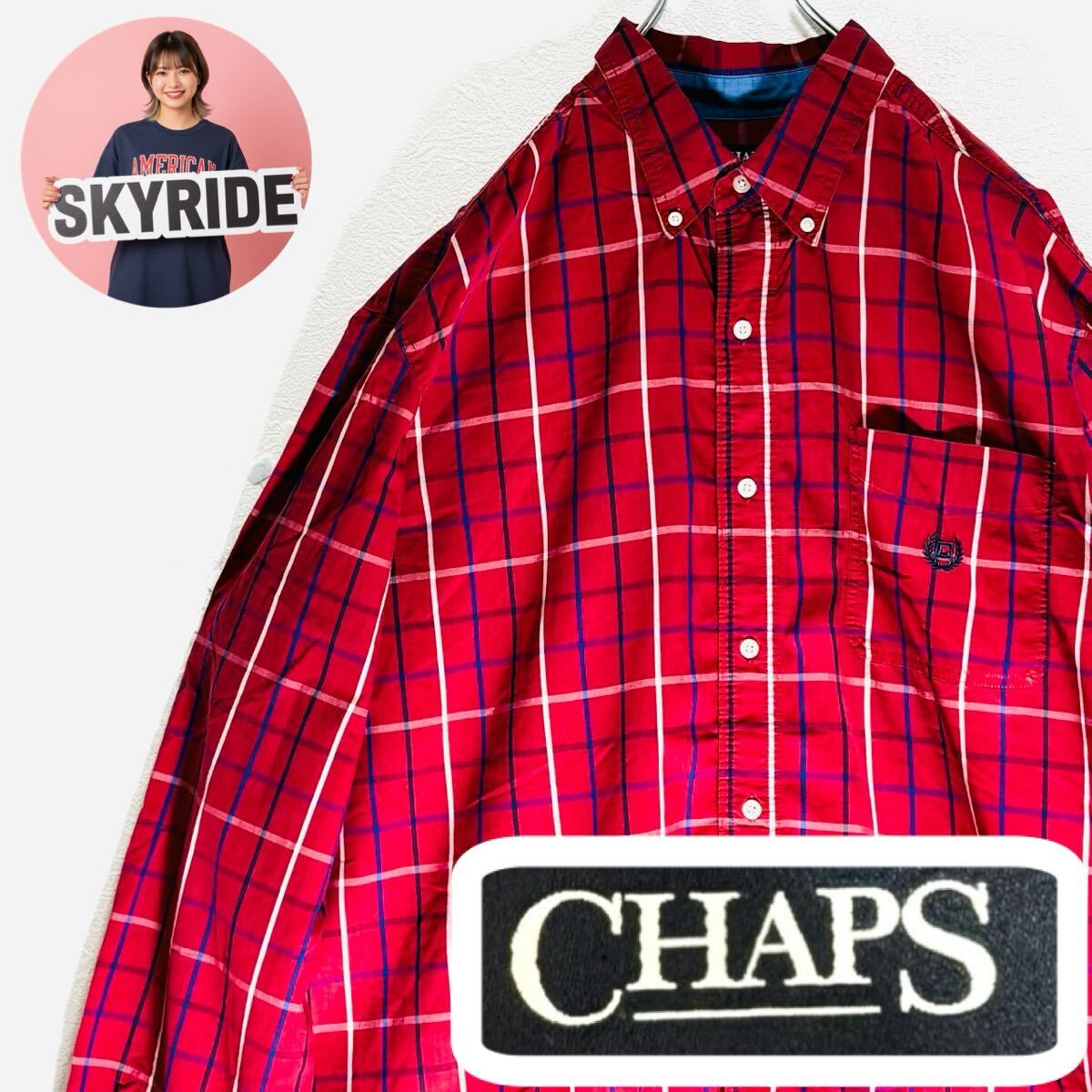 > 希少 90s CHAPS チャップス 長袖シャツ 刺繍ロゴ ボタンダウン 2XL 赤 チェック コットン100% ビッグシルエット アメカジ 古着 #SB0254