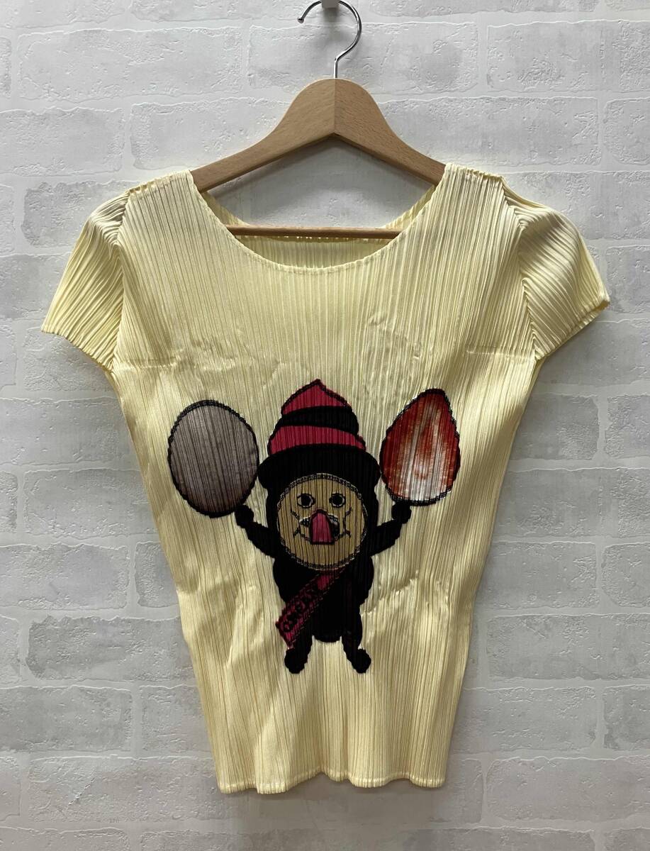 > ★【PLEATS PLEASE】 半袖シャツ PP71-JK961 イエロー キャラプリント イッセイミヤケ