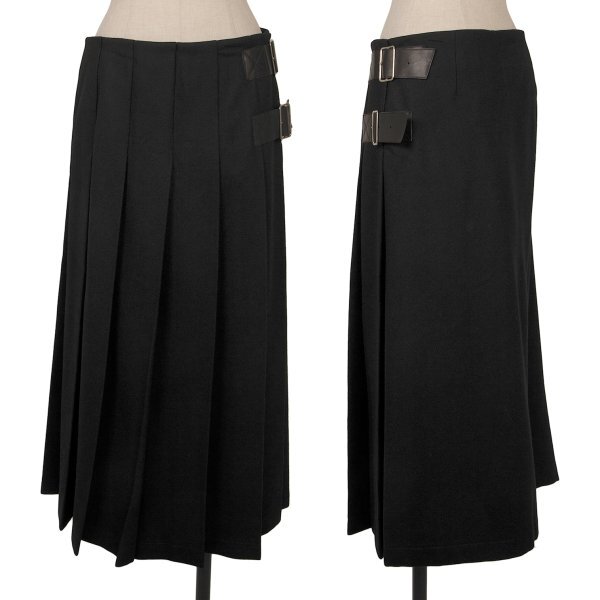 > トリココムデギャルソンtricot COMME des GARCONS レザーベルトウールプリーツスカート 黒M