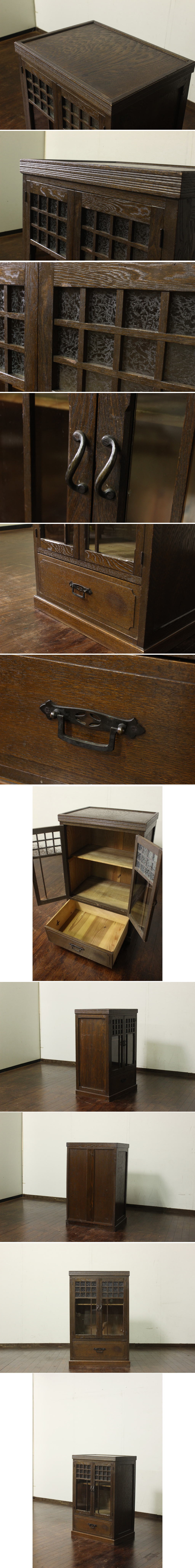 - 新入荷!レトロ・アンティーク!古い風合いの観音開き木製収納棚 食器棚/本棚/無垢材/飾り棚/古家具/什器/ガラスケース/古民家/昭和レトロ