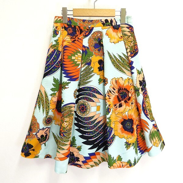 - #a エムエスジーエム MSGM フレアー スカート 40 水色 オレンジ マルチ 花柄 総柄 大柄 フレア タグ付き 907758 k01