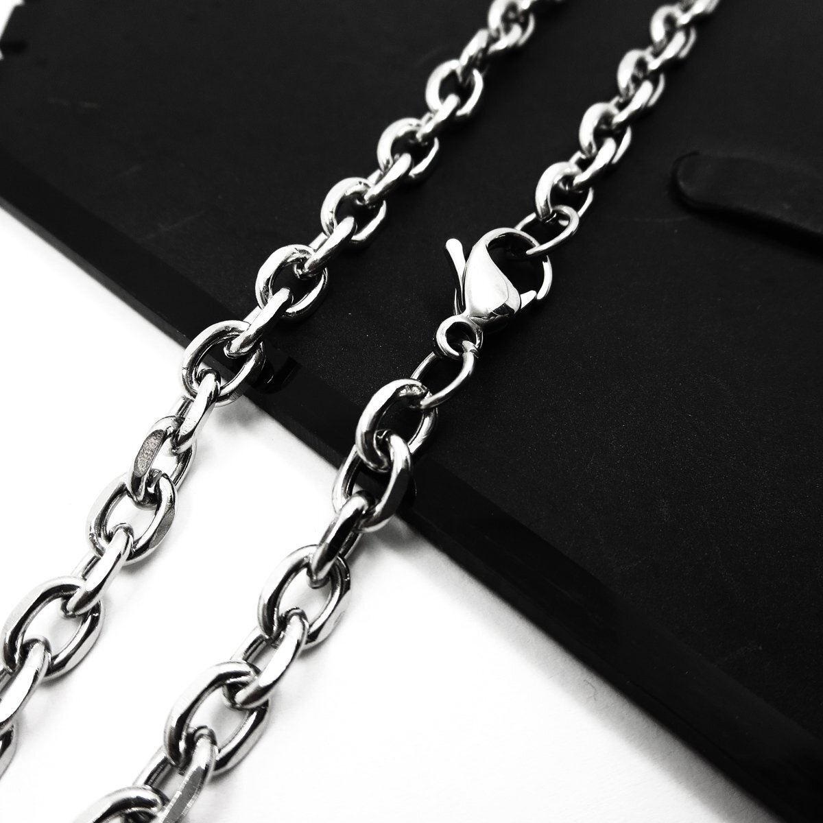 - 6mm幅約38cm 短め ステンレス4面カット小豆チェーン アズキネックレス