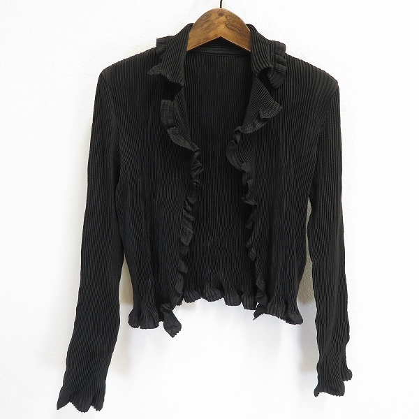 > #a スペッチオ SPECCHIO カーディガン 40 黒 ブラック 長袖 シワ加工 プリーツ ドレープ レディース [953668] k01