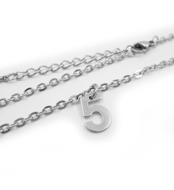 - 5 ナンバー 数字 アンクレット ステンレスチェーン 平小豆 幅2.4mm 27cm(23+4cmアジャスター)