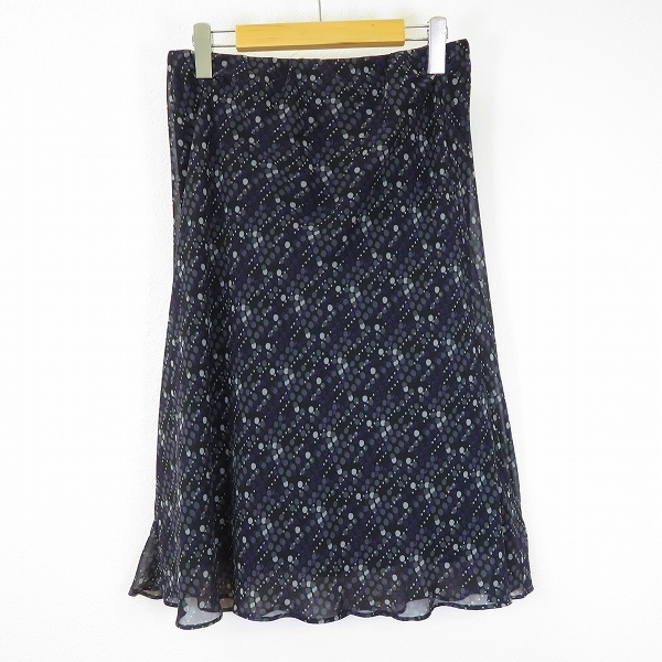 > #a ローラアシュレイ LAURAASHLEY スカート 11 黒 グレー系 紫 総柄 ドット柄 水玉 シフォン タグ付き 美品 レディース [941252] k01