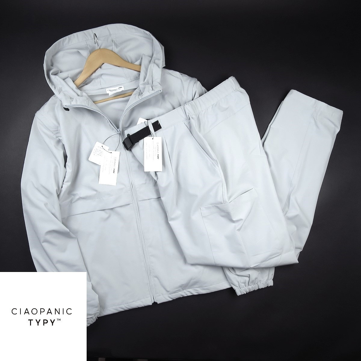 > 新品 ★ チャオパニック CIAOPANIC TYPY ストレッチナイロン 2way フードジャケット パンツ セットアップ 304A5・302A4 /灰/【M】