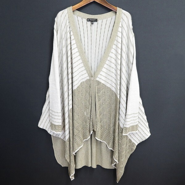 - #a トリコットシック TRICOT CHIC ロング カーディガン I-46 グレー ベージュ ニット ラメ ストライプ イタリア製 美品 [858106] k01