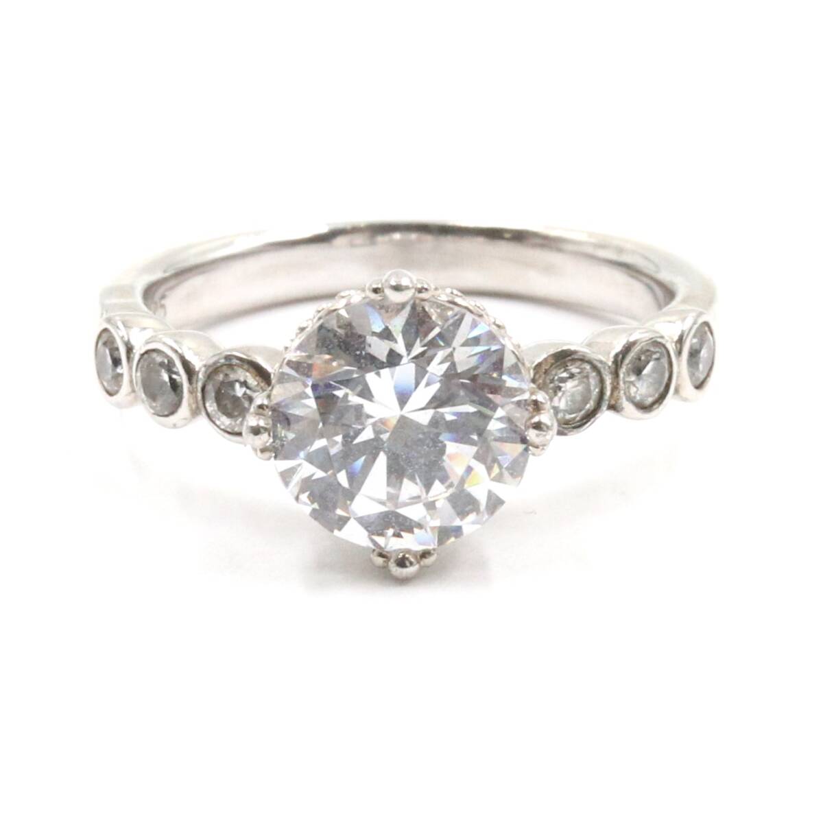 > ★【ノーブランド扱い】 シルバー 925 ラインストーン リング 指輪 サイズ約15号 小物 アクセサリー レディース シルバー系