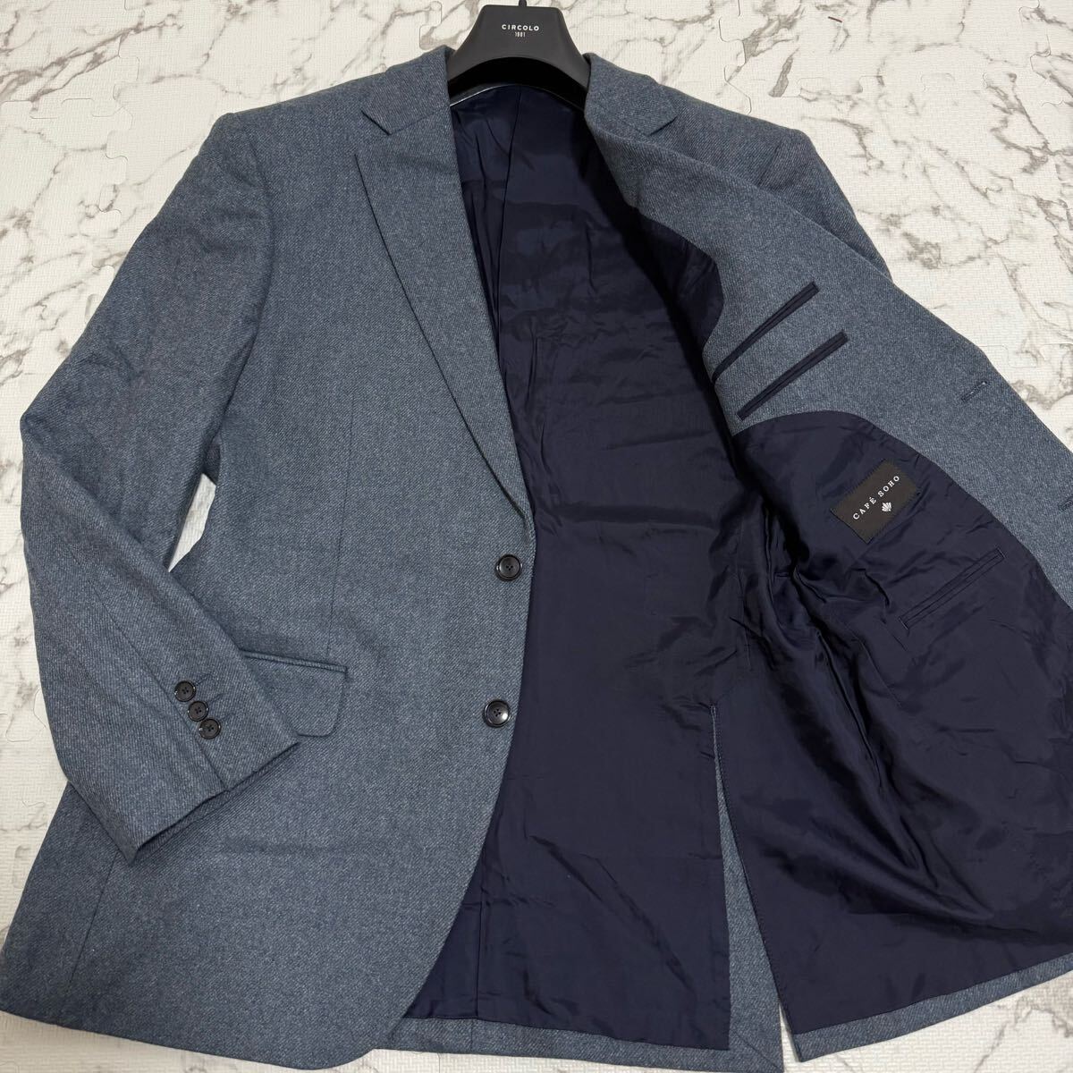 > 超希少2XL!カフェソーホー【圧倒的高級感】カシミア混 CAFE SOHO テーラードジャケット 鮮やかなブルー 2B 総裏 AB8
