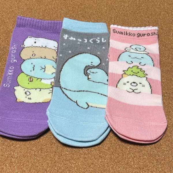 > ゆうmini◆ キャラクター レディース ソックス 靴下 すみっコぐらし 3種 セット とかげ ねこ おかあさん ぺんぎん? しろくま とんかつ
