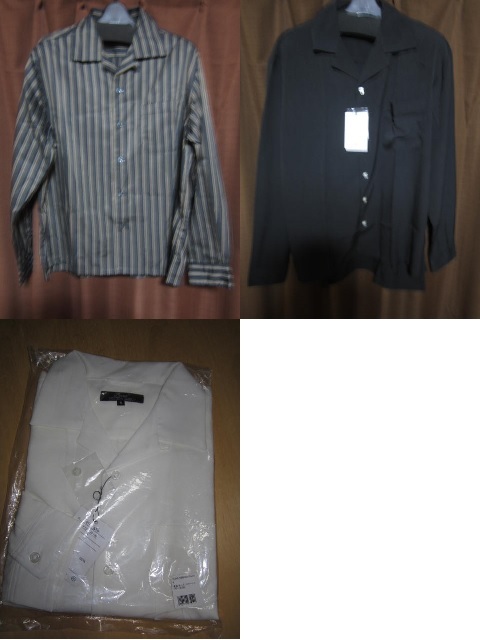 - 長袖オープンカラーシャツ Mサイズ3枚(黒、白2枚 未使用)レトロ 昭和 シンプル ロカビリー