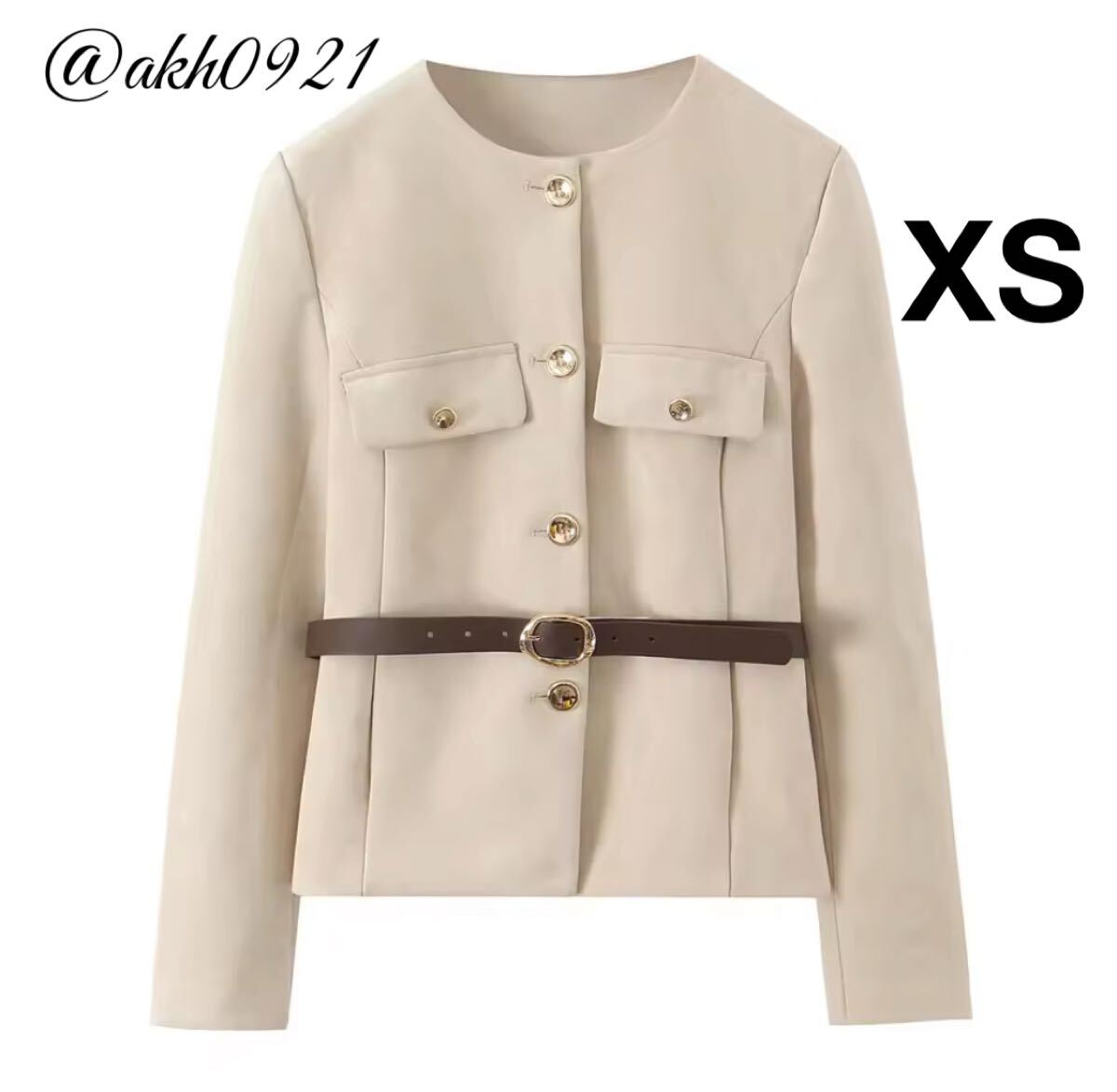 - 新品★秋新作★vintage ヴィンテージ レトロ ベルト付き スエード ノーカラージャケット アウター XSサイズ レディース★ZARA 好きな方に