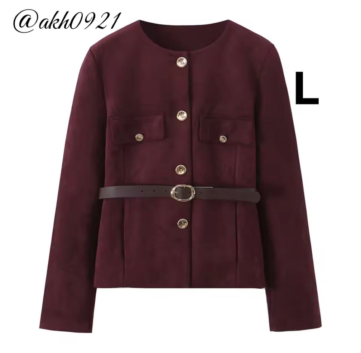 - 新品★秋新作★vintage ヴィンテージ レトロ ベルト付き スエード ノーカラージャケット アウター Lサイズ レディース★ZARA 好きな方に