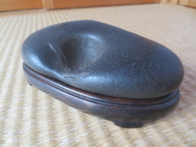 - 【艸】 R7/10/18-3 加茂川真黒石 水あ溜まり石 水石 幅約14㎝ 18oct3