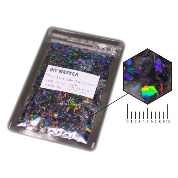 - DIY MASTER ブラックレインボー ラメ フレーク ランダム ミドル 25g (検 ネイル ウレタン 塗装 マジョーラ