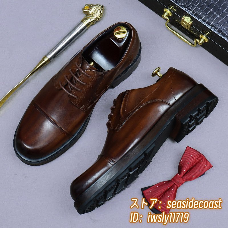 > 極美品★牛革 レザーシューズ ビジネスシューズ メンズ 切替 イギリス風 職人手作り 超希少 牛革 革靴 紳士靴 結婚式 新品 珈琲色 27.5cm