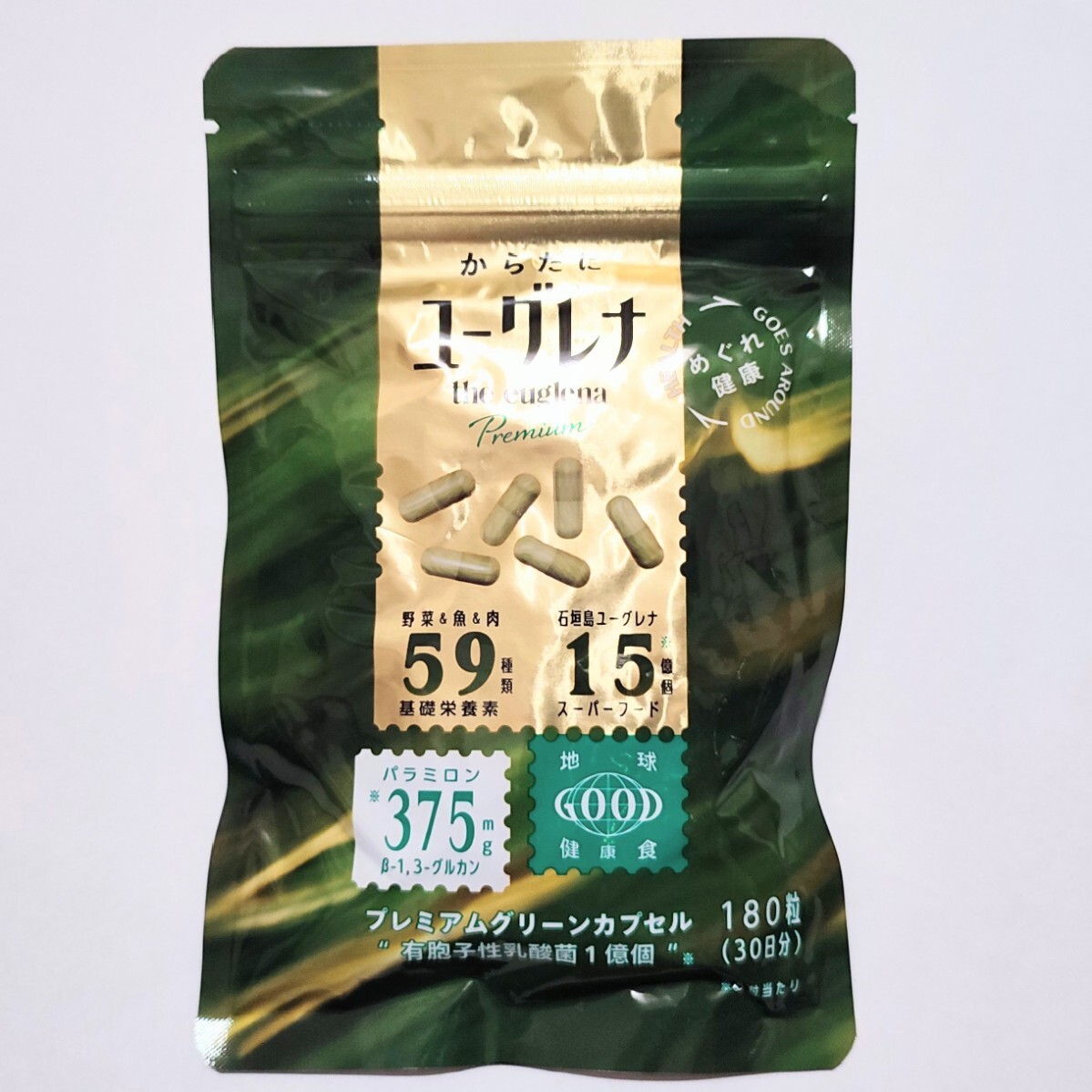 - からだにユーグレナ プレミアムグリーンカプセル 180粒 パラミロン アミノ酸 ビタミン サプリ サプリメント ミドリムシ プラス