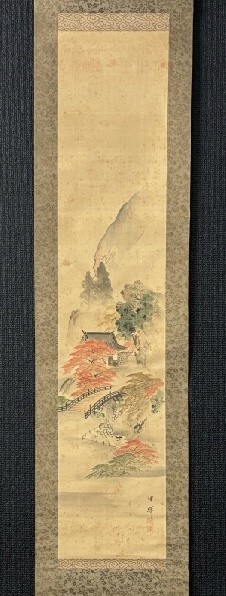 - 【模写】横山清暉「紅葉山水図」絹本箱付 松村景文師事 四条派 江戸後期 京都の人 検) 秋景 文人画 南画 南宋画 書画 掛け軸 日本画 水墨