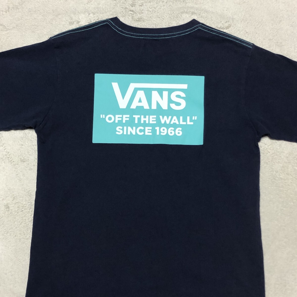 - バンズ VANS 半袖Tシャツ クールネック バックロゴプリント ボックスロゴ ネイビー Sサイズ