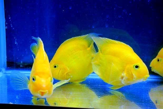 > 過背金に最適! お得な3匹セット ハイ・イエローパッロト(オレンジではない)!アロワナの目垂れ防止に!!ビックサイズ 13cm±