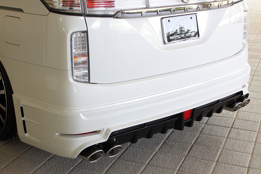 > M'z SPEED リアアンダースポイラー(マフラー4本出し用) 塗分塗装 (QAB/GAE) FRP エルグランド E52系 H26.4~R2.9 ハイウェイスター MC後