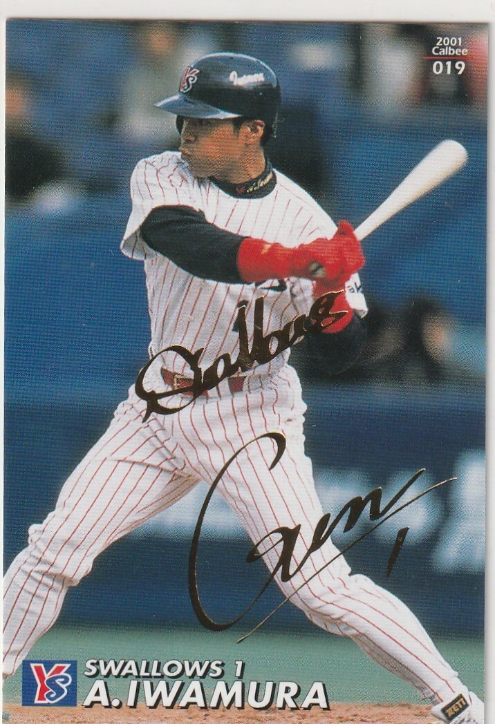 - ●2001カルビー 【岩村 明憲】プレ版:金箔押サインパラレル No.019:ヤクルト