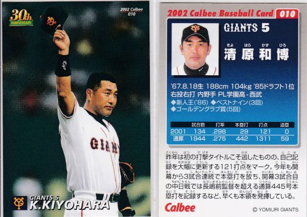 - ●2002カルビー 【清原 和博】 BASEBALL CARD No.010:巨人 R6