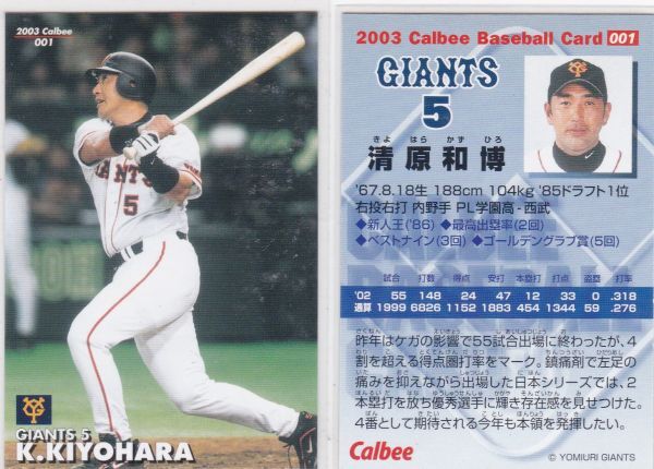> ●2003カルビー 【清原 和博】 BASEBALL CARD No.001:巨人 R5