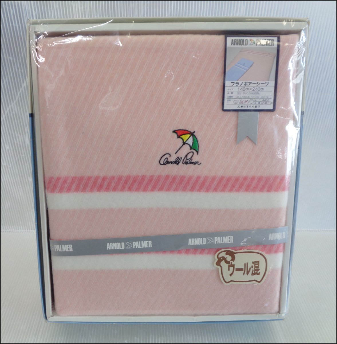 > Bana8◆未使用◆アーノルドパーマー ウール混 フラノボアーシーツ 140×240cm ボーダーミックス ピンク