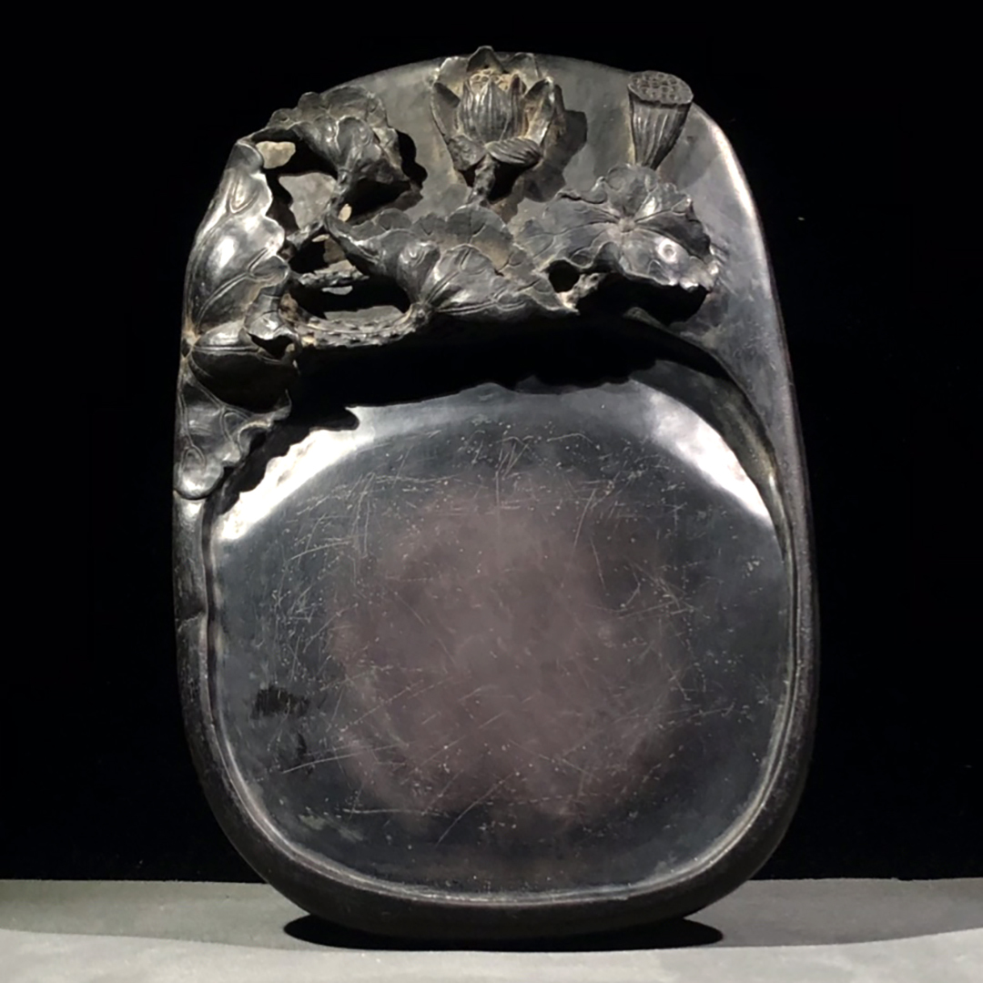 - ▽鴻▽清時代 老坑端硯 荷葉蓮蓬紋端渓硯 沈梧銘 唐硯 墨寶 書道具 時代物 中国古美術 骨董品