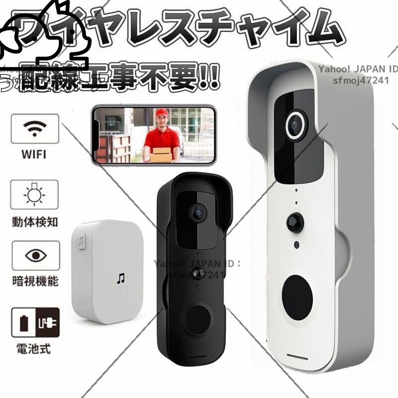 - インターホン カメラ付き ドアホン インターフォン ワイヤレス ワイヤレスチャイム 玄関インターホン 呼び鈴 電池式 遠隔監視 配線不要