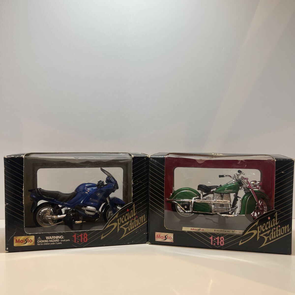 - Maisto 1/18 BMW R 1150 RS ブルー 青 Indian Four 緑 グリーン オートバイ マイスト バイク 2台セット