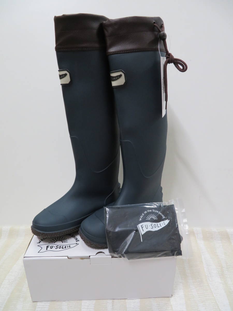 - ビックイナバお薦め!阪神素地 男女兼用・PVCポータブル長靴FU-5501【ネイビー/M/24.5-25.0cm】フラット底・収納袋付の品、即決2990円☆