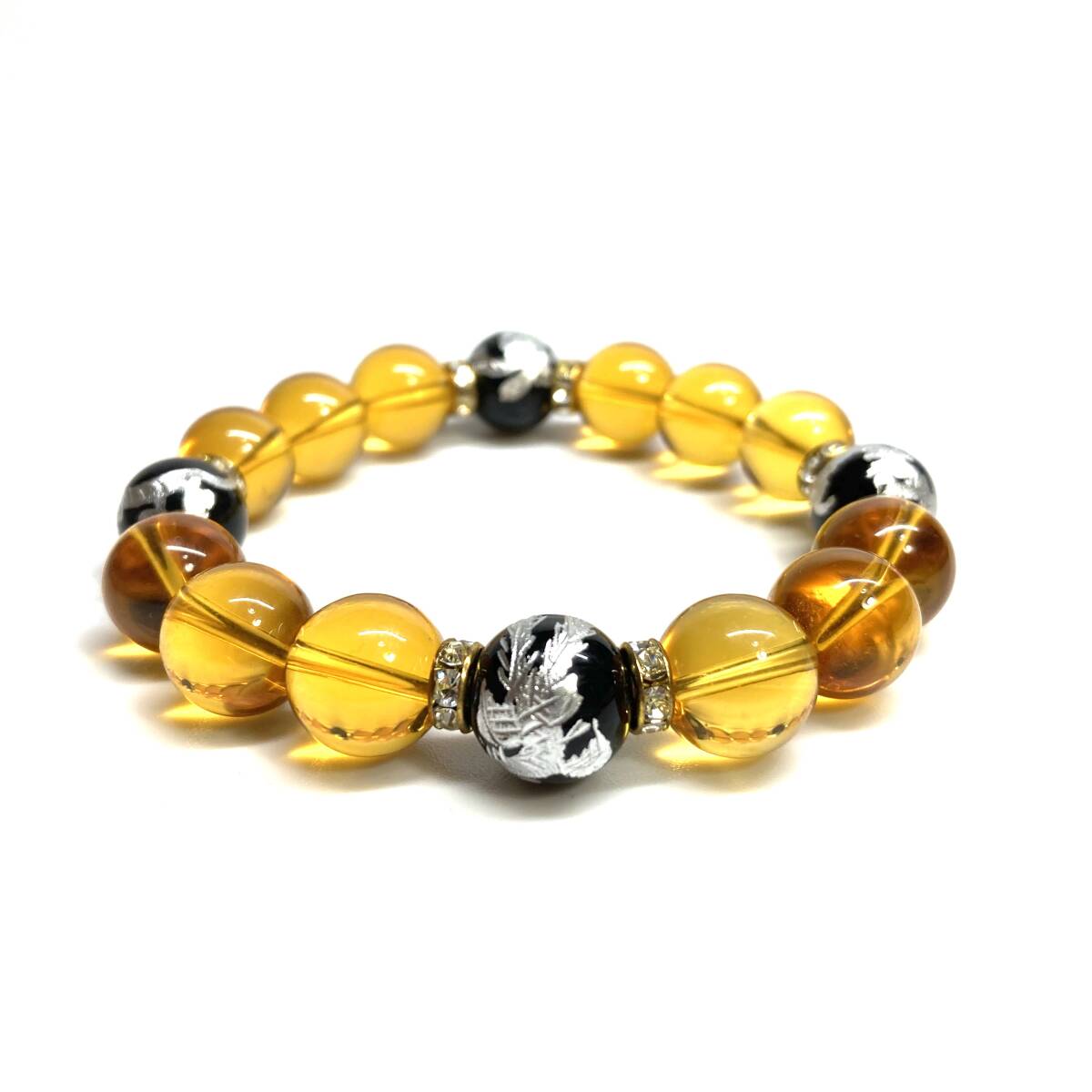 > 四神獣銀彫オニキス×シトリン 12mm パワーストーン ブレスレット天然石 青龍 白虎 玄武 朱雀 運気上昇 金運 健康 お守り 開運 四神獸 G