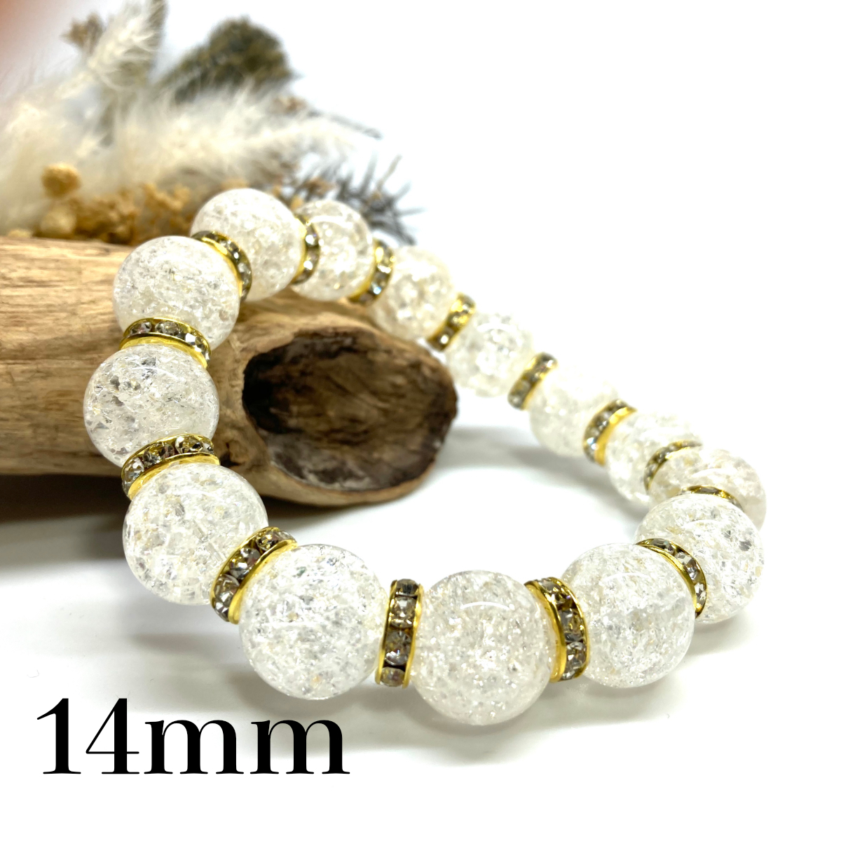 - パワーストーン ブレスレット クラック水晶 14mm 天然石ブレス (ゴールド) 開運 浄化 数珠ブレス メンズ 男性 プレゼント 14ミリ