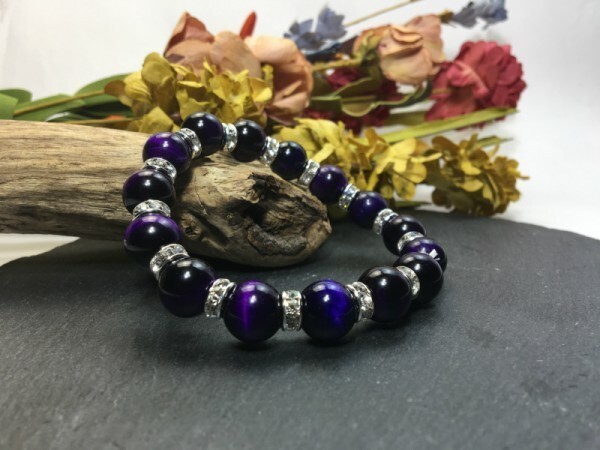 > パワーストーン ブレスレット パープルタイガーアイ 12mm 天然石ブレス シルバー 開運 金運 浄化 数珠ブレス メンズ 男性