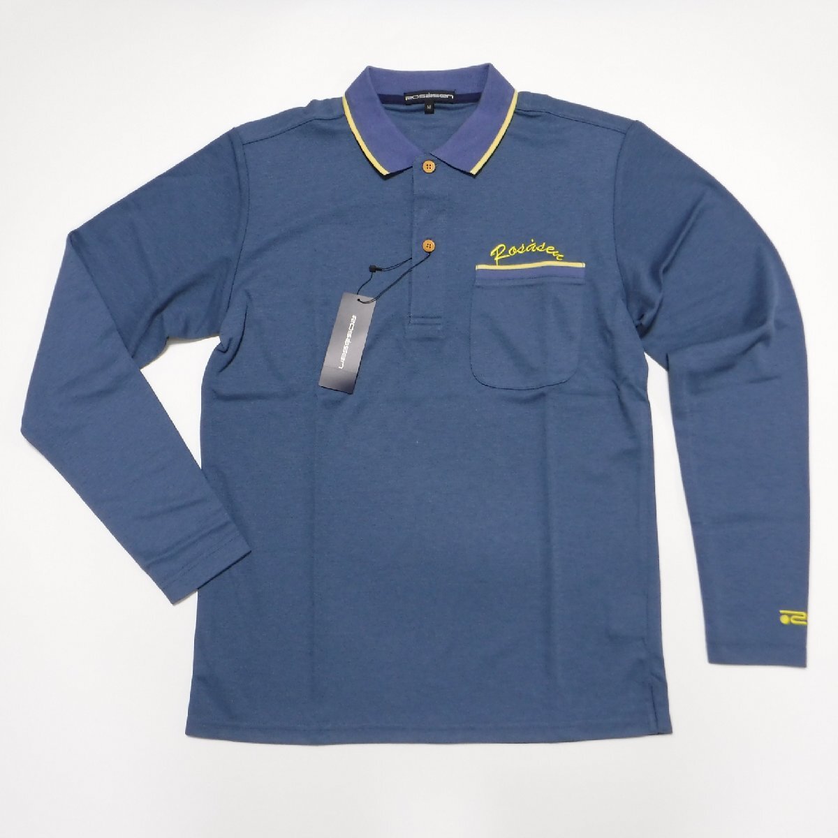 - R226 ロサーセン Rosasen 定価15400円 日本製新品 長袖 ゴルフシャツ ウール混 ポロシャツ M 秋冬 ブルー ヒールクリーク 兄弟ブランド