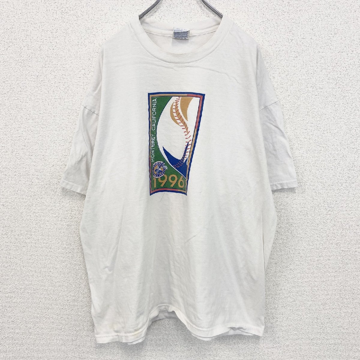 > 古着 used Hanes ヘインズ 半袖プリントTシャツ 白 シングルステッチ 90s 野球 クルーネック XXLサイズ